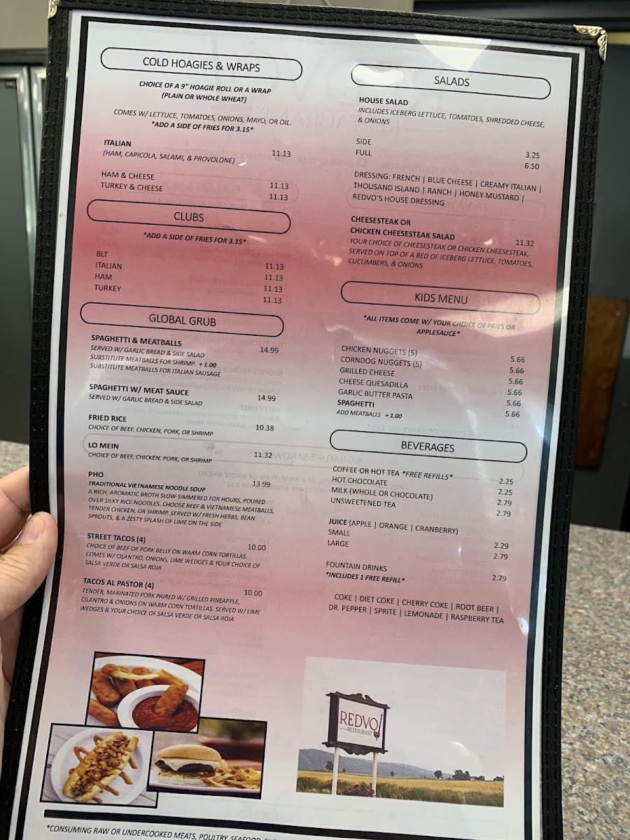Redvo Restaurant offers a straightforward menu centered around classic American comfort food with a focus on satisfying combinations and familiar flavors. The menu features hearty sandwiches, including cheesesteak combos served with fries and a fountain soda, alongside options like grilled chicken sandwiches, pulled pork, and chicken fingers. Homemade hot sauce and signature sides such as mozzarella sticks and curly fries add a flavorful touch to the meal.